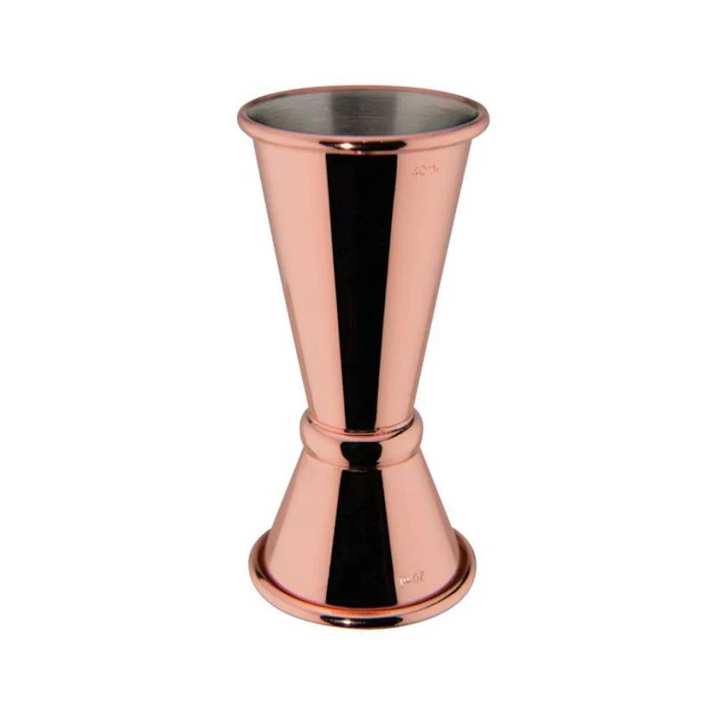 Il misurino doppio per cocktail in acciaio inox placcato è un utensile professionale indispensabile per ottenere dosaggi precisi e perfetti. Con una scala graduata esterna, consente di misurare facilmente gli ingredienti per cocktail, garantendo risultati sempre impeccabili. Perfetto per uso domestico o in bar, è un accessorio preferito dai professionisti del settore. Il design elegante in acciaio inox placcato assicura durata e resistenza, facendo di questo misurino un must-have per ogni amante della mixologia. Confezione singola.