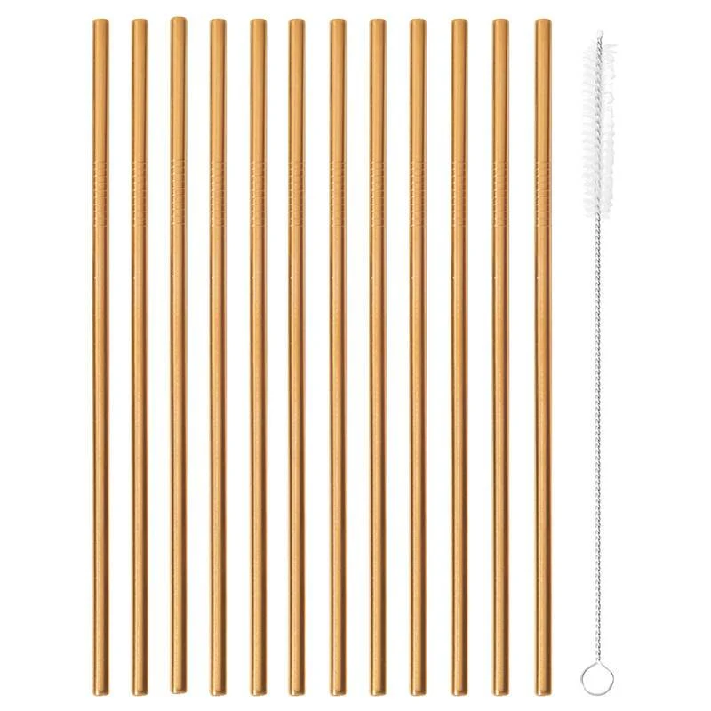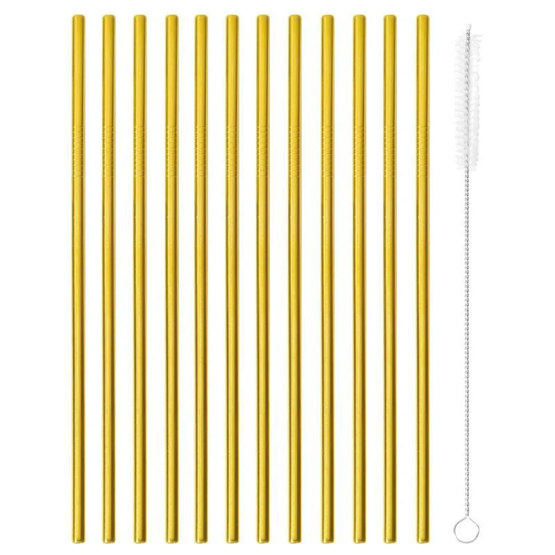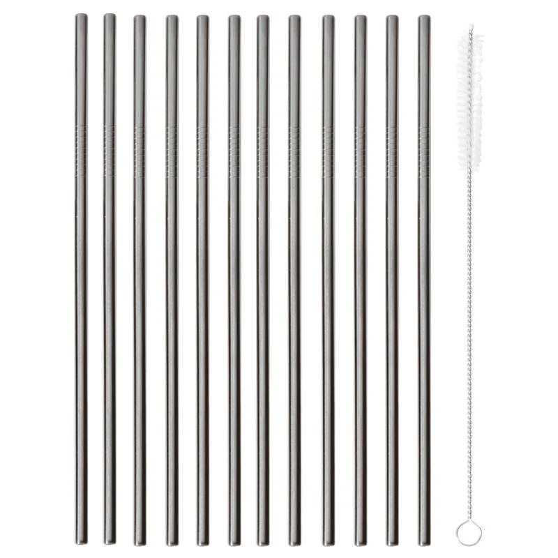 21.5 cm – Cannucce Riutilizzabili Dritte In Acciaio Inox Con scovolino Set 12 Pz
