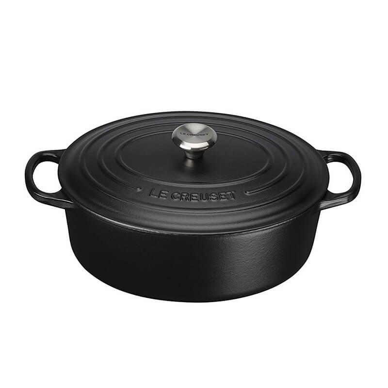 La Casseruola Ovale Evolution di Le Creuset, in ghisa smaltata vetrificata nero matto, offre una cottura uniforme e controllata, ideale per tempi prolungati. Resistente all’usura, non assorbe umidità o odori, mantenendo i sapori autentici. Compatibile con tutte le fonti di calore, è dotata di maniglie ergonomiche per un facile trasporto. Il coperchio ermetico e il pomello resistente al calore garantiscono un uso efficiente. Lavabile in lavastoviglie, è adatta anche per conservazioni in frigorifero e congelatore. Prodotta in Francia, senza nickel.
