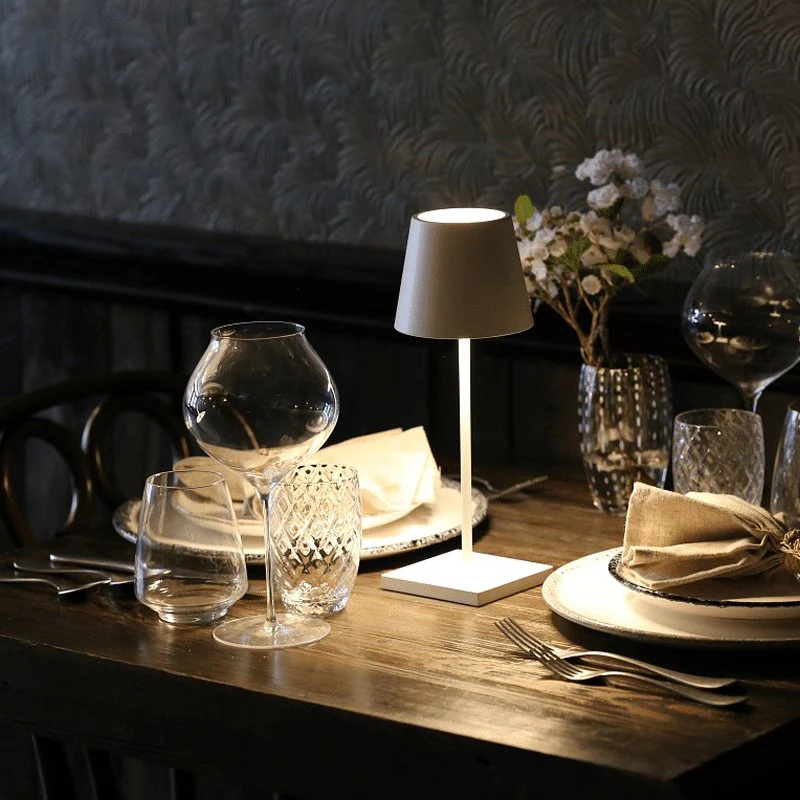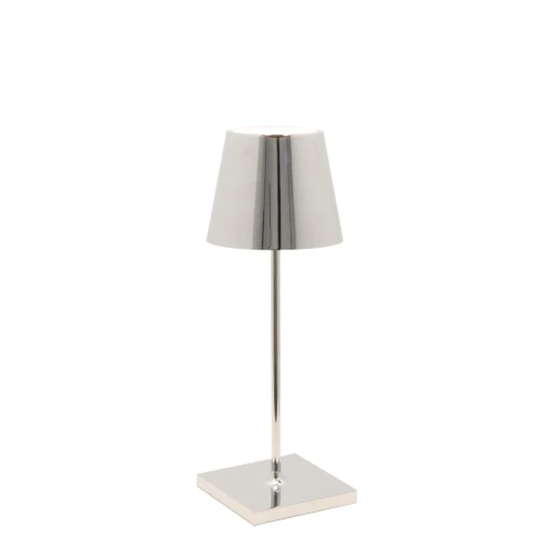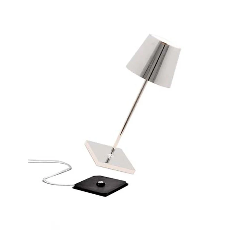 Lampada da tavolo ricaricabile con struttura in alluminio verniciato e diffusore in policarbonato. Dotata di comandi touch per l’accensione, la regolazione dell’intensità luminosa e la selezione della temperatura colore (2200K, 2700K, 3000K). Protezione IP65 contro polvere e schizzi, adatta per uso interno ed esterno. Batteria integrata con autonomia fino a 12 ore. Ricarica completa in 6-7 ore. Caricabatterie incluso. Prodotto realizzato in Italia. Disponibile In Varie Colorazioni.