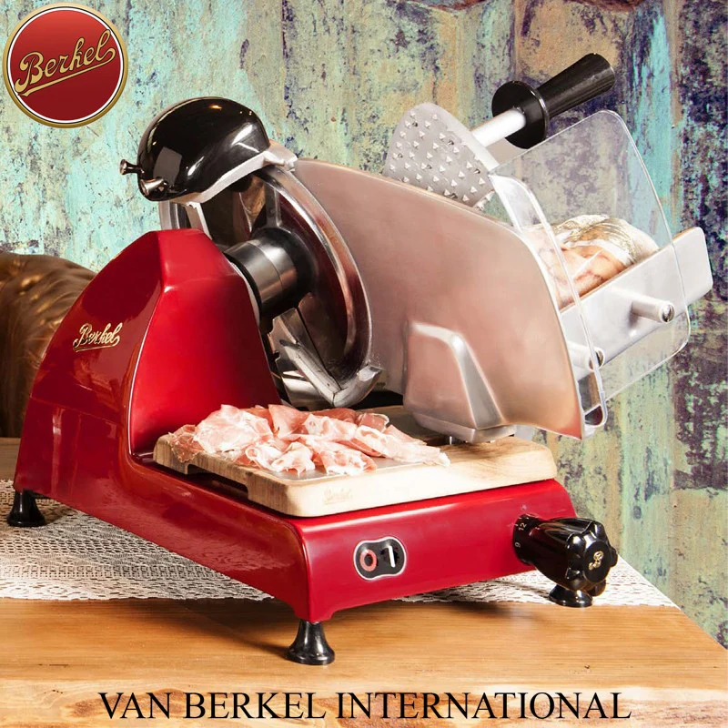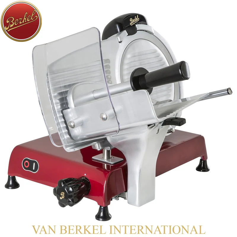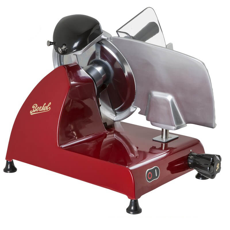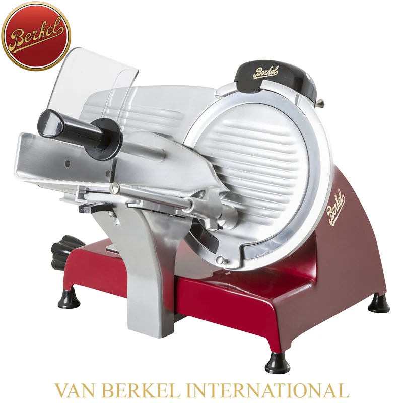 Scopri la RED LINE 250 MF, l’affettatrice elettrica che coniuga eleganza e performance per un’esperienza culinaria senza pari. Progettata da Berkel, icona di qualità dal 1898, questa affettatrice offre un taglio perfetto grazie alla lama in acciaio cromato con profilo professionale. La struttura in lega speciale d’alluminio garantisce robustezza e durata. Il sistema di regolazione millimetrica permette un controllo preciso dello spessore del taglio, mentre il piatto a sgancio automatico e il coprilama facilmente rimovibile rendono la pulizia rapida e semplice. Perfetta per chi cerca affidabilità e sicurezza domestica, integra un affilatoio per una manutenzione ottimale. La RED LINE 250 MF è la scelta ideale per chi desidera distinguersi con un prodotto all’avanguardia.